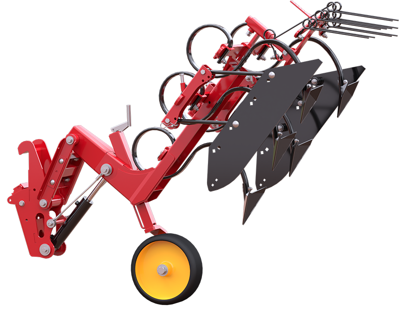 The frame of the inter-row cultivator is designed with a high ground clearance of up to 85 cm. Each row unit can be lifted to 75 cm. The high frame and high lifting height expands the time frame for cultivation since it can work in higher plant rows without damaging the crop. The lifting height is important to take better care of your crops and leave them untouched.