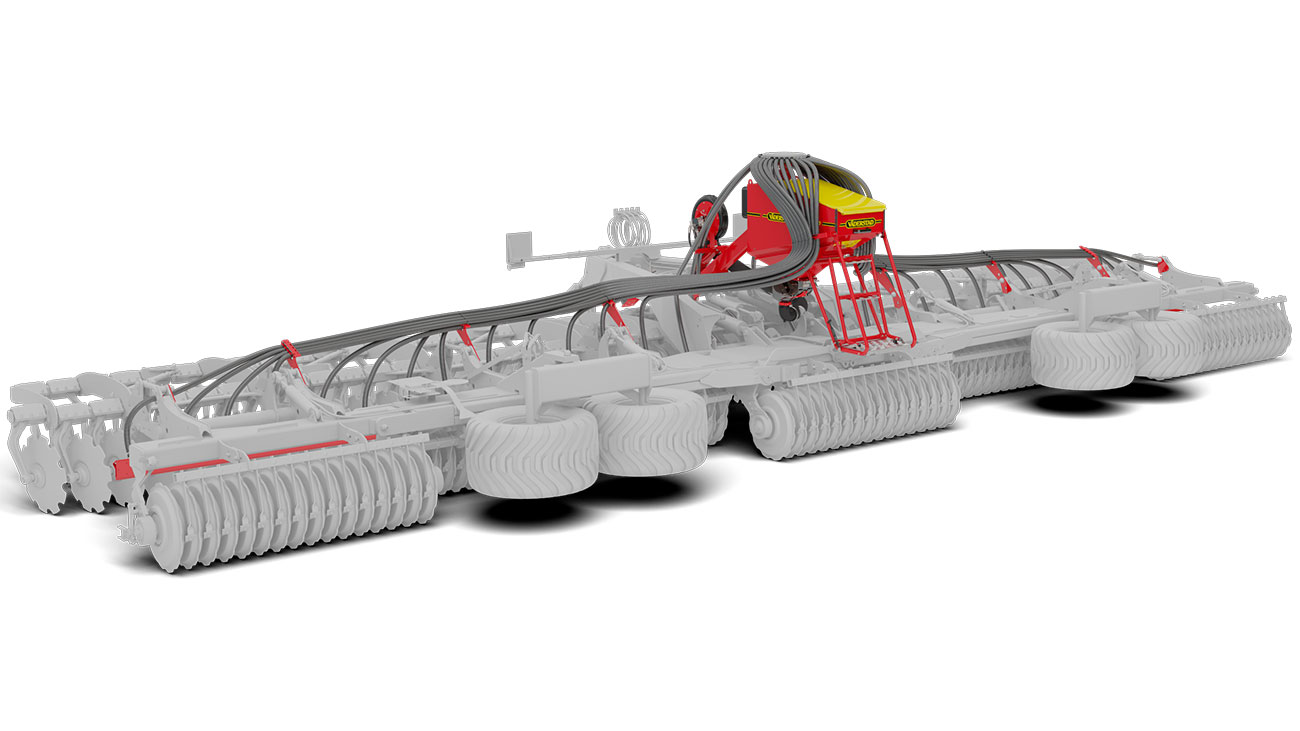 Integrovaná jednotka pozemního radaru umožňuje perfektní měření rychlosti. Vysoký výkon ventilátoru zajišťuje rovnoměrnou distribuci osiva přes celou šířku pracovního záběru bez ohledu na velikost semen.