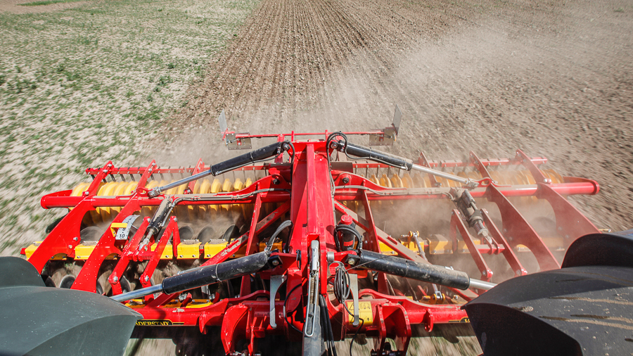 Disky jsou umístěny do tvaru písmene X, což umožňuje vzájemné vyrušení bočních sil. Toto řešení zaručuje, že stroj jede vždy klidně a v přímé linii za traktorem. Tím se šetří nafta a je to rovněž nutné při používání naváděcího systému GPS nebo při jízdě v kopcovitém terénu.