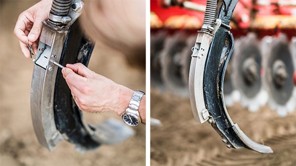 Systém jištění při najetí na kámen s uvolňovací silou 700 kg udržuje správnou pracovní hloubku za všech podmínek a přispívá tím k rovnoměrnému růstu plodin.