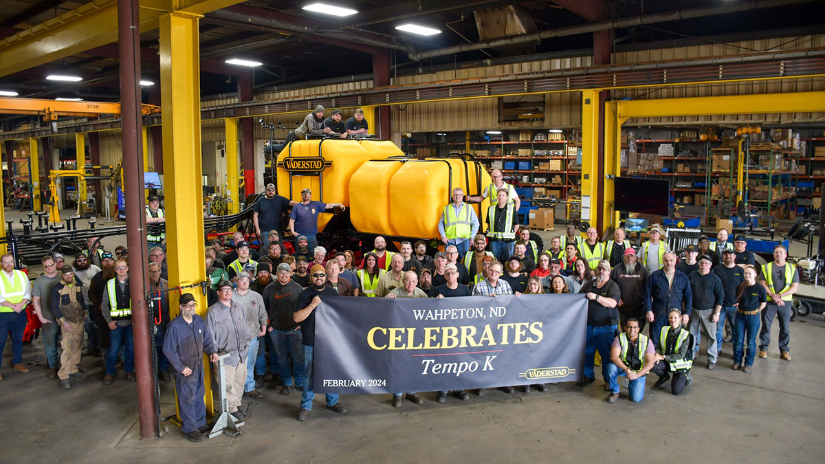 The production of the first Tempo K pre-series machine marks a significant milestone for Väderstad, and there is growing excitement about the launch of this product. A celebratory event was recently held at the end of the assembly line in Wahpeton, ND to commemorate the occasion.
