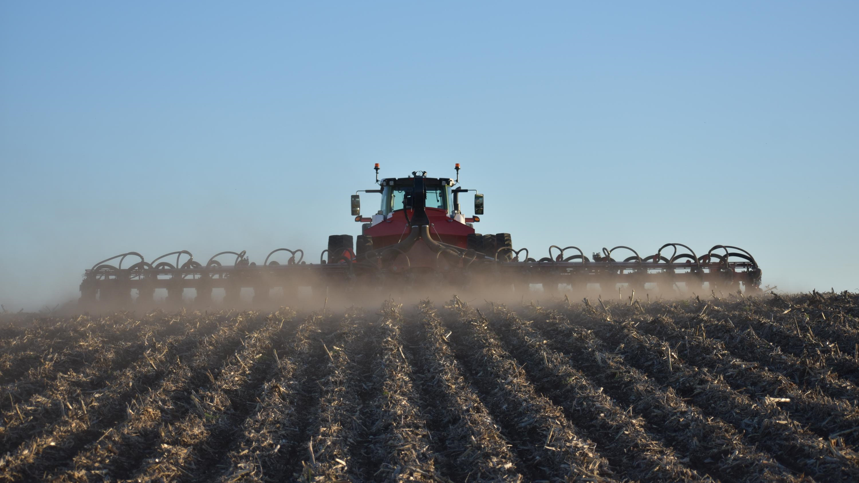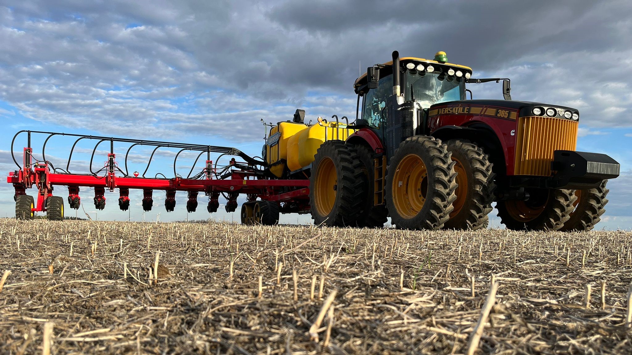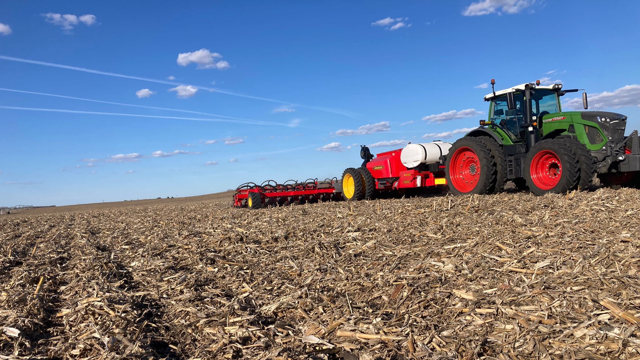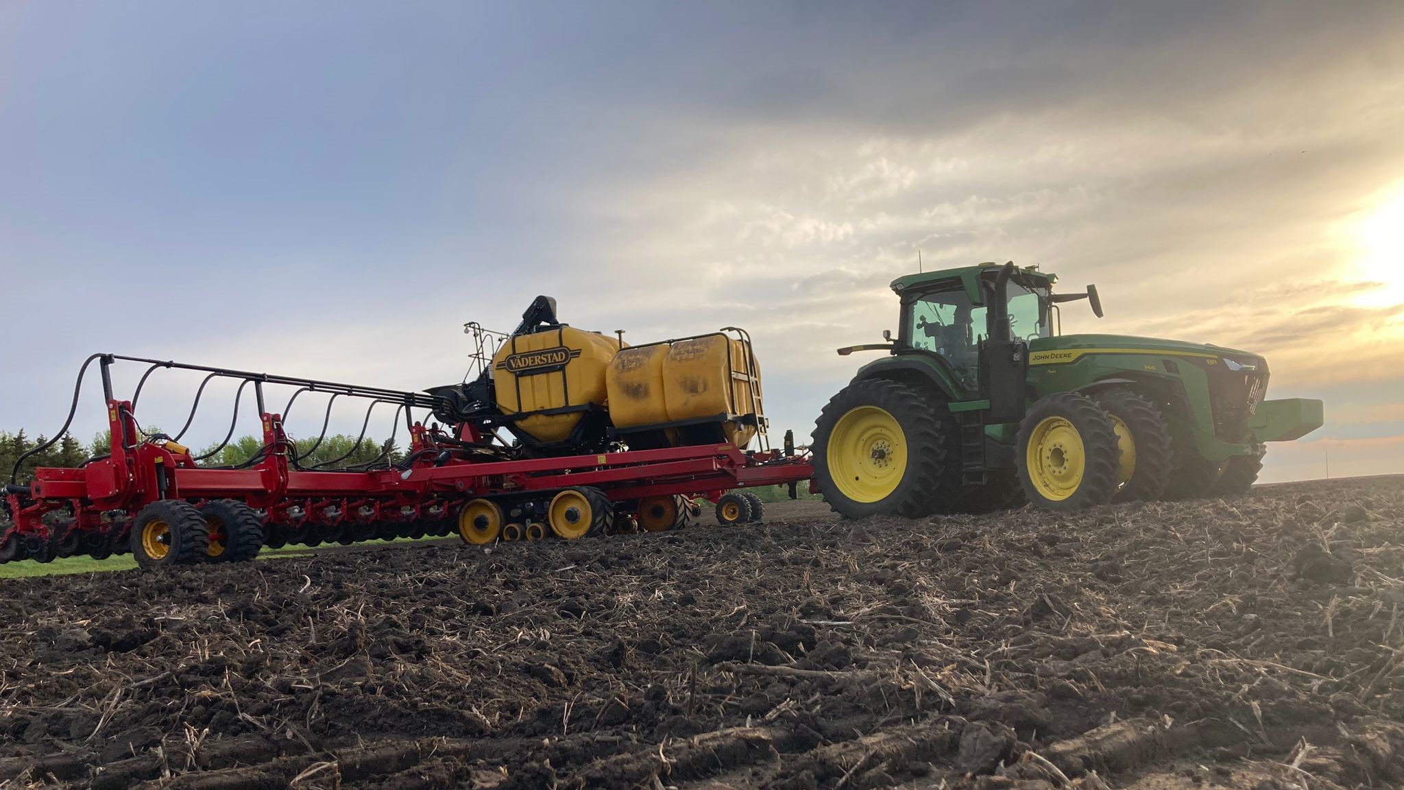 Soybean planting continues in limited till cornstalks residue in Verona, ND.