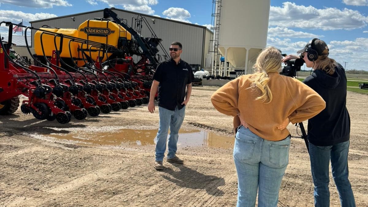 Shooting an Agweek segment with Travis from Infinity Ag and Sawyer Burchill, Test Engineer with Väderstad.