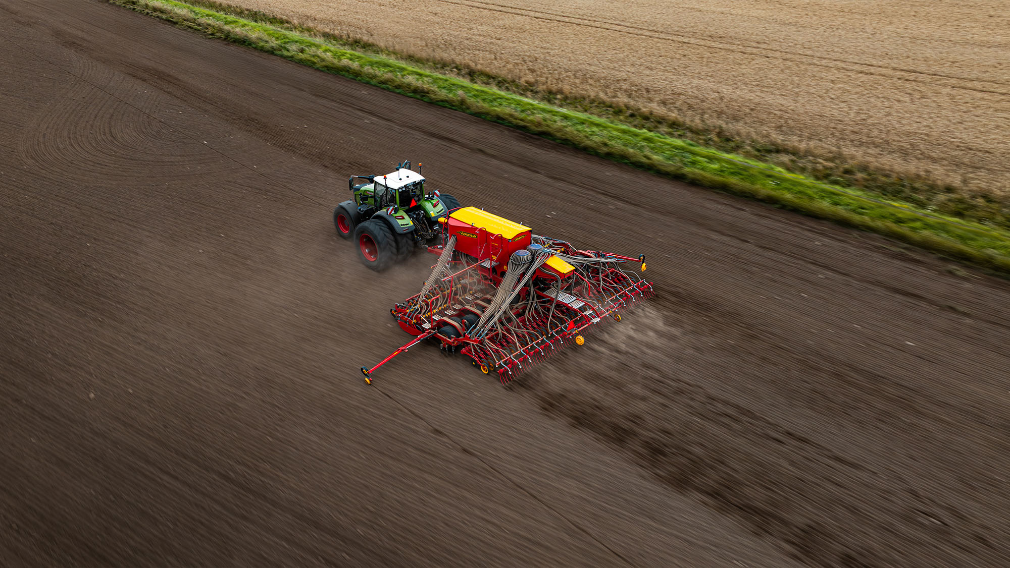 Die pneumatische Drillmaschine Spirit führt Einebnung, Saatbettbereitung, Rückverfestigung, Säen und Andrücken in nur einer Überfahrt aus. Sie ist bekannt für ihre beeindruckende Ablagegenauigkeit – auch bei hohen Geschwindigkeiten. Dank ihrer reihenunabhängigen Tiefenpräzision legt Spirit die Saat immer in der gewünschten Tiefe ab. Sie profitieren von einem gleichmäßigen Aufgang über das gesamte Feld.
