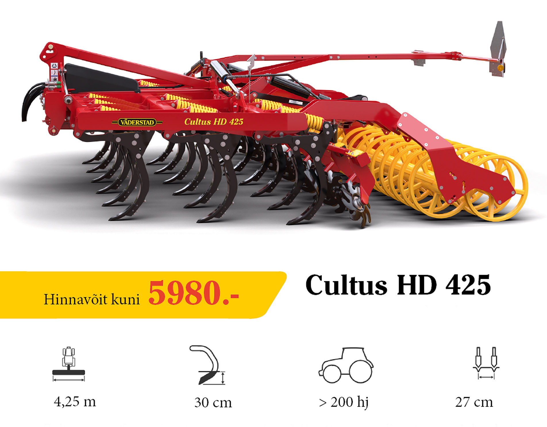 Cultus HD 425 on väga tugeva raamiga tüükultivaator, väga tugev pii kivikaitsesurve, 680 kg/pii kohta. Varustuses Double SoilRunner tihendusrull, 50/80 Marathon piiotsad, Dynamic control.