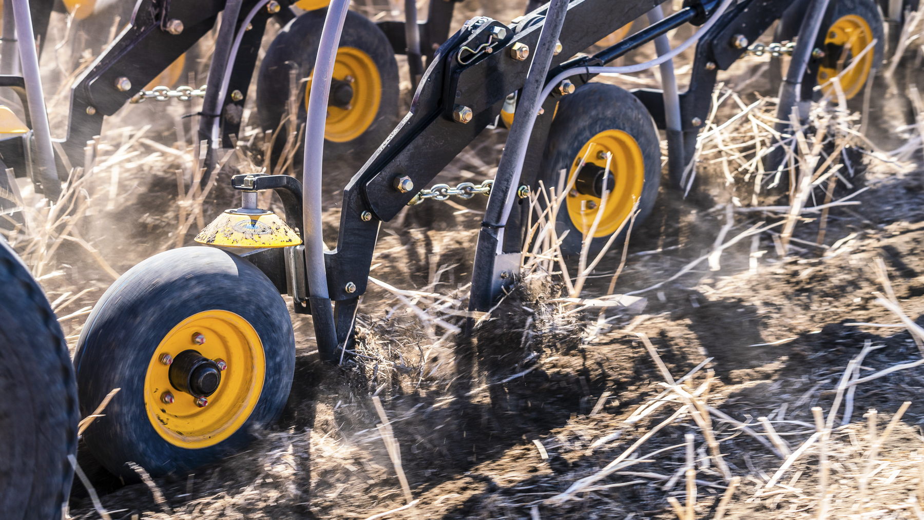 The first knife aerates and warms the soil, placing the fertiliser. It runs deeper than the seed knife, bringing up moist soil from below and providing the seed with greater moisture access at this early, critical growth stage.