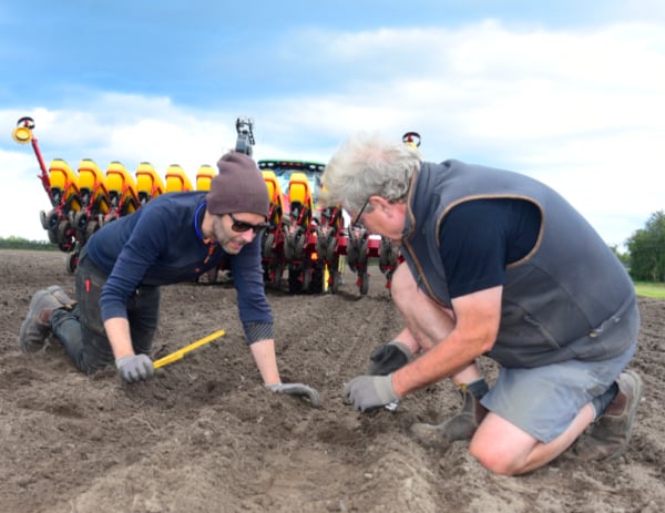 Jensas Blachas (dešinėje) ir Tempo operatorius Troelsas Brokas (Troels Brok) tikrina sėjos gylį. Norint, kad žieminiai rapsai gerai įsitvirtintų, labai svarbu tiksliai įterpti sėklas. Jie yra labai patenkinti Väderstad paslaugomis ir parama, kurią gavo pradėję eksploatuoti Tempo tiksliąją sėjamąją Lykesholmo ūkyje. Jensas ir Troelsas sako, kad su Väderstad darbuotojais, prireikus pagalbos, buvo galima susisiekti ir dieną, ir vakare.