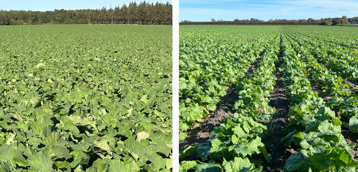 Sėjos laikas svarbus rudeniniam augimui. Kairėje pusėje sėta rugpjūčio 15 d., o dešinėje – rugpjūčio 28 d.