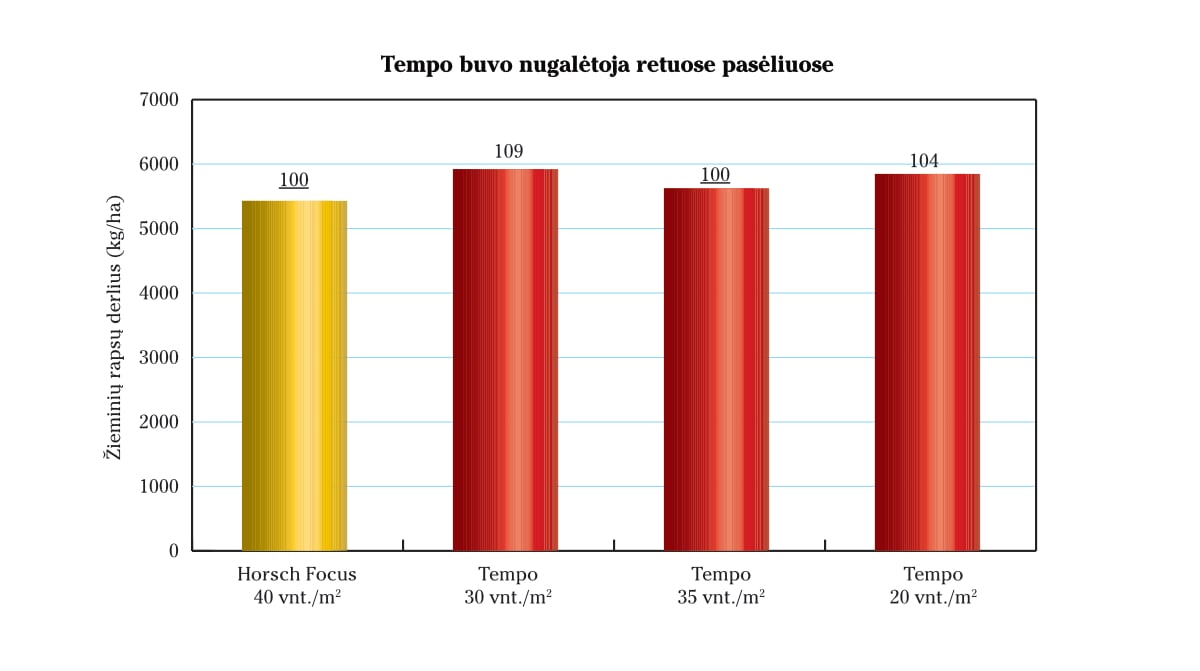Plote, kuriame Tempo pasėjo žieminius rapsus tik su 20 sėklų į kvadratinį metrą, rapsų derlius buvo daugiau kaip 200 kg didesnis nei ten, kur į kvadratinį metrą buvo pasėtos 35 sėklos. Taigi, reti pasėliai davė didesnį derlių ir tai tapo svariu argumentu tiksliai sėjai su Tempo sėjamąja, kuria galima pasėti mažesnį augalų kiekį.
