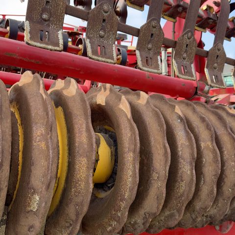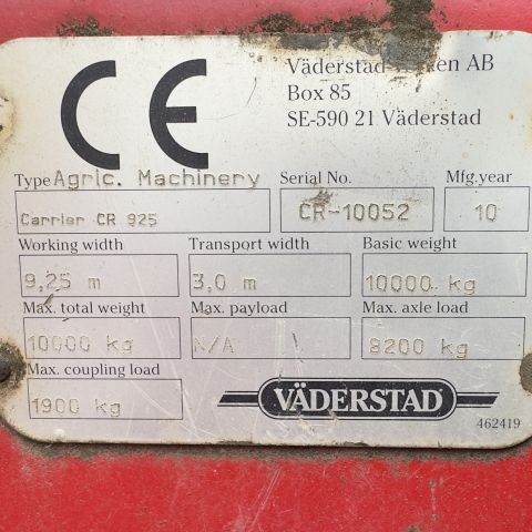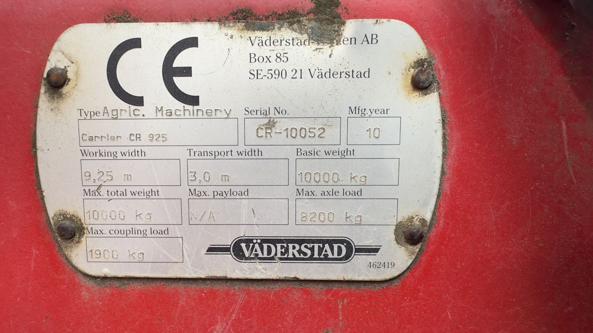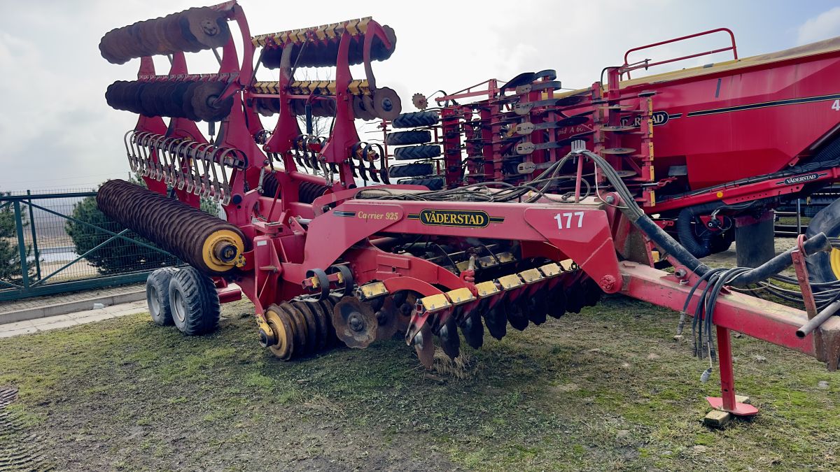 Komplektacija: Diskinis skutikas Carrier 925, 2010 metų, plotis 9,25 m, hidrauliškai reguliuojama lyginimo lenta, sunkusis plieninis volas.