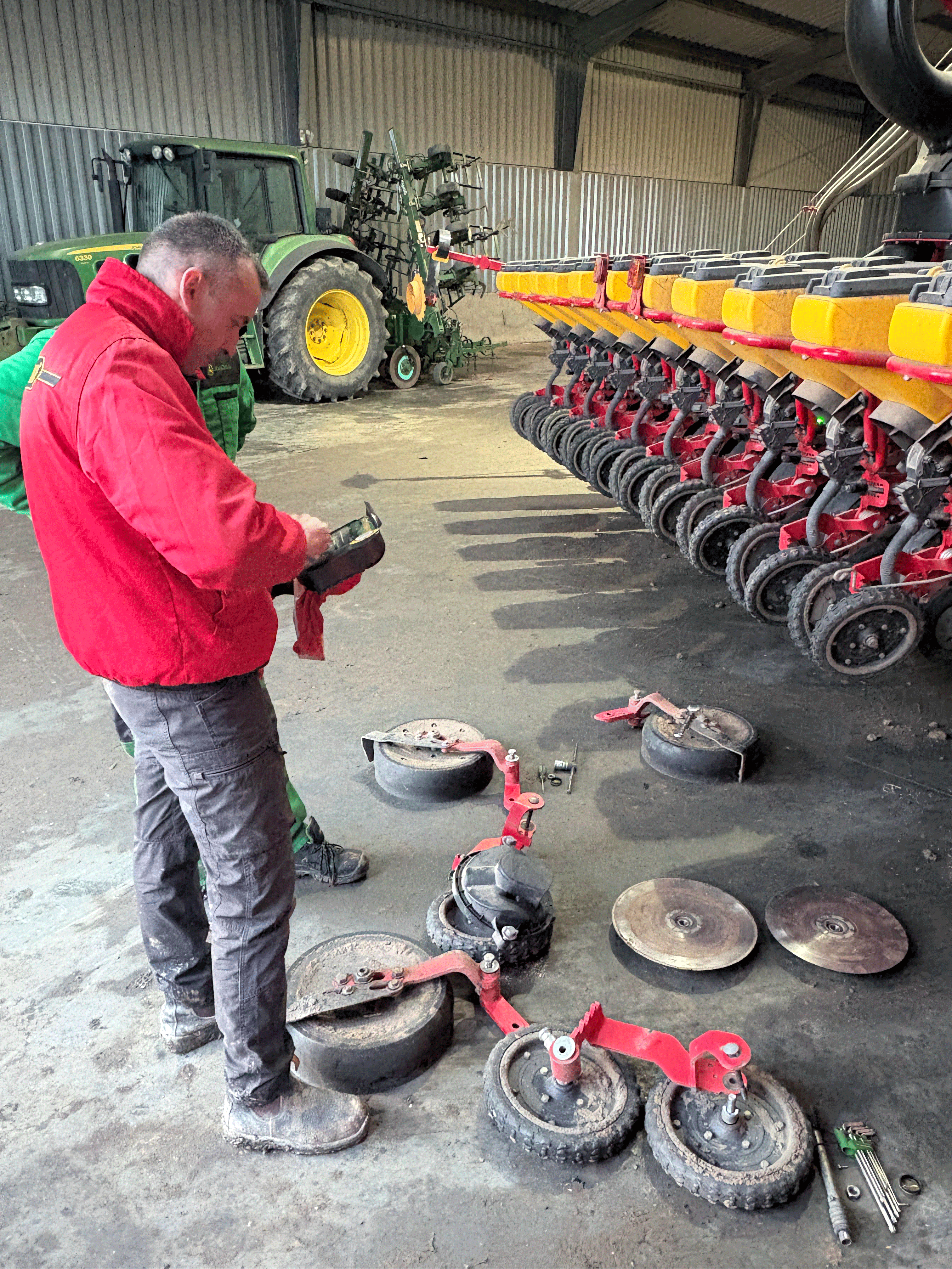 Dlatego też w Fasgro panuje jasna zasada: przeglądy wykonuje się zimą, zanim zacznie się presja sezonu. – Jeżeli chodzi o nasze maszyny, one muszą być gotowe w 100% do sezonu. Wtedy ma czasu na jakieś awarie i większe remonty – mówi Wojciech Marciniak z firmy Fasgro, stojąc obok rozłożonego na sekcje siewnika Tempo. – Chcemy mieć pewność, że siewnik jest gotowy do sezonu, ponieważ siejemy sporo hektarów tym siewnikiem.