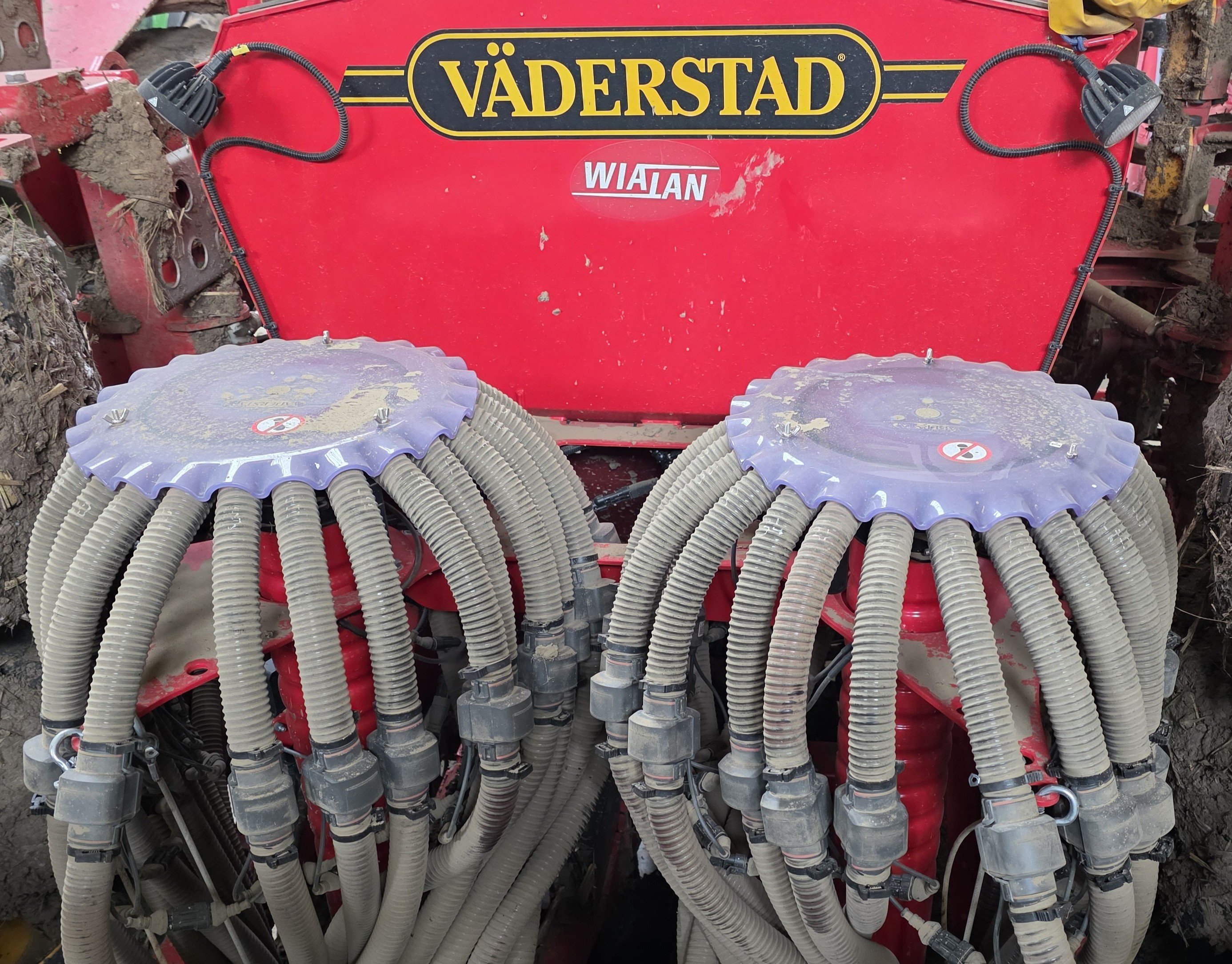 Michał Jakimowicz zaprawia zboża we własnym zakresie, co jak się okazało wpływa na pracę systemu SeedEye. System działa poprawnie, ale istnieją dobre praktyki, których warto przestrzegać. Zbyt duża ilość pyłu z zaprawy powoduje osadzanie się go na fotokomórkach zliczających nasiona, co może zakłócać ich pracę. Informacja ta z czasem pojawi się na terminalu obsługującym siewnik. Po takim komunikacie rolnik czyści fotokomórki w wodzie z płynem do mycia naczyń. Demontaż/montaż nie trwa długo i nie wymaga użycia narzędzi. Wystarczy czujnik wypiąć/wpiąć z przewodu nasiennego zmieniając położenie specjalnych klipsów. Fotokomórki można także czyścić za pomocą delikatnej szczoteczki dostarczanej przez producenta, co pomaga w przypadku zwykłego pyłu z pola. Osadzoną zaprawę skuteczniej usunie mycie.